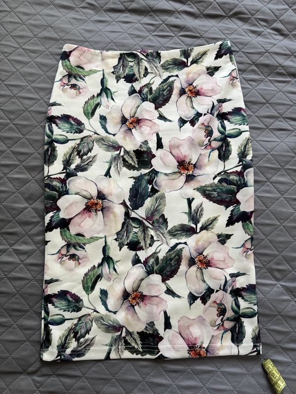 Жіноча спідниця в яскраві квіти. Не вдягалася жодного разу. Бірки немає, матеріал синтетичний, але приємний до тіла. Заміри є на фото.