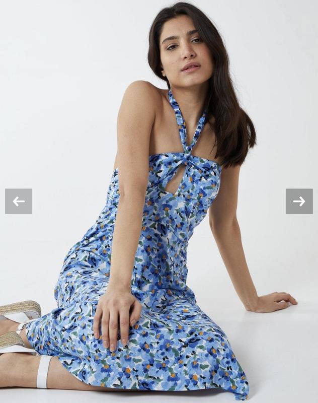 Мила літня сукня від Blue vanilla з цікавим декольте ідеально підходить для створення легкого, невимушеного і водночас стильного образу. Приємна тоненька тканина, квітковий принт, матеріал - 100% поліестер. Можна прати в пральній машині. Застібається за допомогою прихованої блискавки на спині. Довжина приблизно 95 см. На моделі одягнено розмір 8. Зріст моделі: 177 см. Розмір 8/36, заміри на фото, не тягнеться практично. Нова, з біркою.