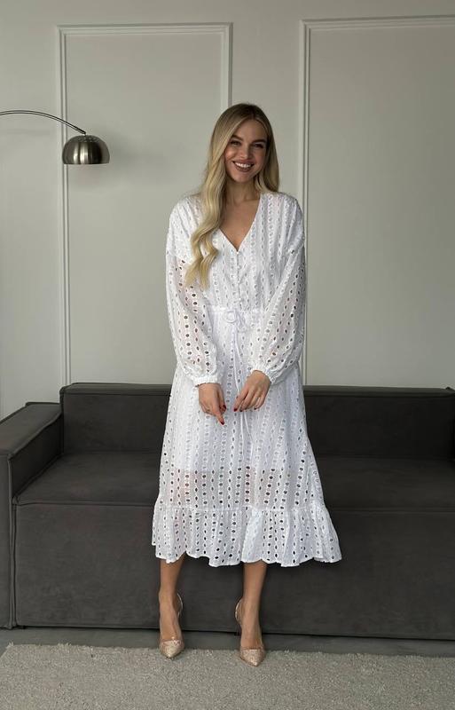 Сукня 2932/1 — ніжність, яка зачаровує • Тканина: бавовна, прошва • Розміри: 42–46, 48–52 • Довжина: 122 см • Ціна: 1799 грн Заміри: ▫️ Розмір 42–46: • обхват грудей: 100 см • талія на кулісці: 85 см • стегна (спідниця розкльошена): 130 см ▫️ Розмір 48–52: • обхват грудей: 125 см • талія: 105 см • стегна: 135 см Легка, повітряна сукня, яка дарує відчуття свободи й жіночності. Ідеальний вибір для особливих днів і натхненних моментів!