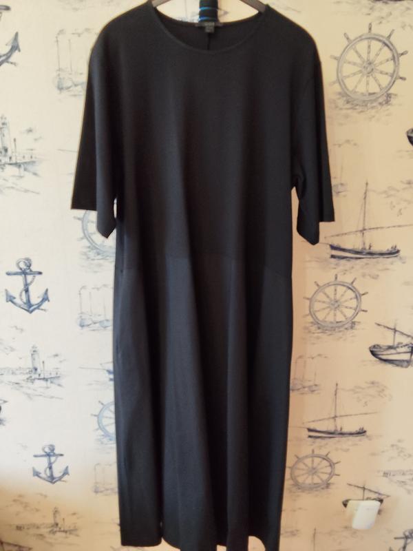 Платье COS в насыщенном черном цвете, носила бережно, почти новое. Комфортного, свободного кроя, идеальный пошив, в боковых швах - карманы. Два вида ткани: сверху - как футболка - коттон с эластаном; снизу - как рубашка - коттон. Размер указан XS, но болеемерит, красиво садится на М, возможно на небольшой L. Смотрите замеры: длина - 121; НОГ - 52; ПОТ - 62; длина рукава от шва - 27.