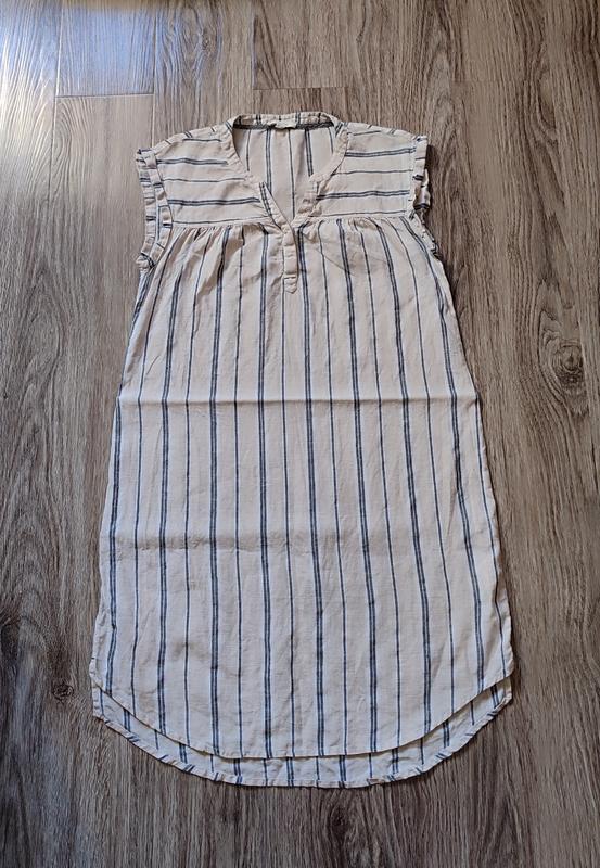 Довжина переду 92 см, спинки 96 см Ширина під пахвами 50 см Ширина в районі стегон 55 см. 100% льон. Сукня в ідеалі, випрана, залишилось погладити.