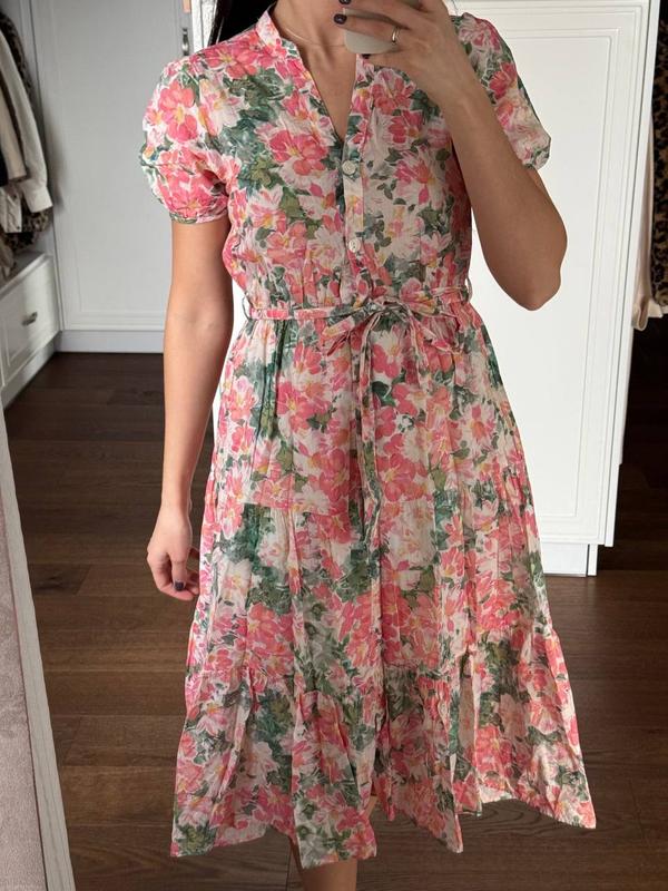 Літня ідеальна з гарним принтом Плечі 34 см Груди 41 Талія 30 ( але ще розтягується резинка ) то може бути більше Довжина по переду 107 По заду 114 100% віскоза з підʼюпником