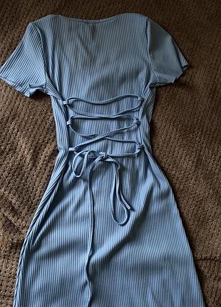 Сукня в рубчик в красивому голубому кольорі, ззаду стягується на шнурівках , щоб підчеркнути силует фігури)