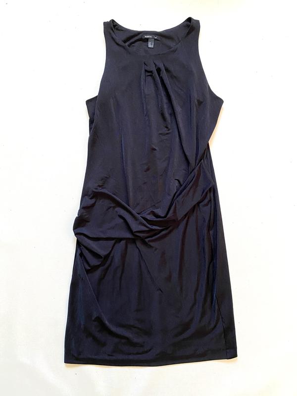 Елегантна чорна сукня без рукавів з чохлом всередині. Напуск на талії Довжина - 100 см. Талія ~ 88-90 см.