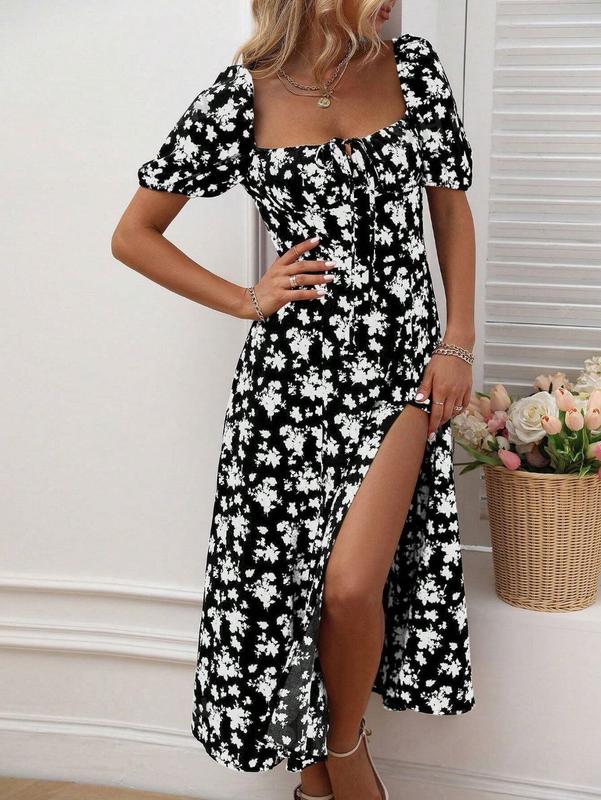 Жіноча сукня з розрізом в дев'яти різних кольорах.