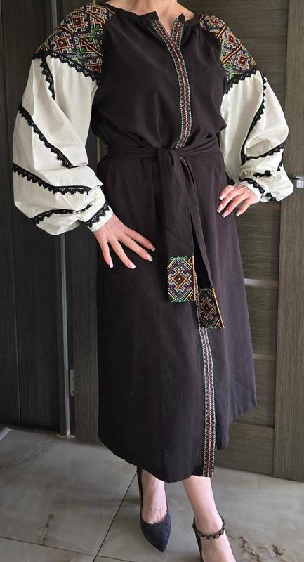 Женское платье вышиванка миди с поясом, платье с вышивкой в украинском стиле