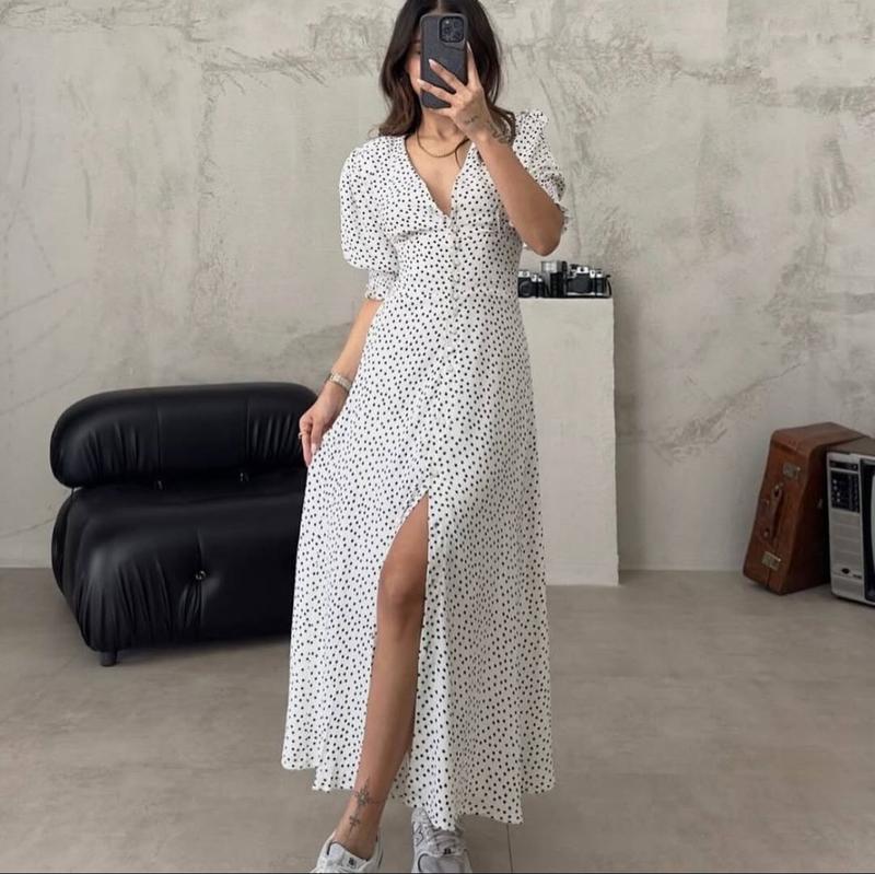 Біла сукня в чорний горошок із ґудзиками від бренду FAMO, у дуже хорошому стані — одягалася лише кілька разів. Розмір XS/S, підійде на тендітну фігуру. Силует злегка приталений, модель із ґудзиковою застібкою спереду — зручно одягати та регулювати посадку. Матеріал штапель легкий, м’який і приємний до тіла , тканина комфортна в носінні, не парить і добре тримає форму. Сукня лега, виглядає акуратно і жіночно. Принт — класичний чорний горошок на білому фоні. Підходить для повсякденного образу, побачень, прогулянок, офісу чи фотосесій. Можна носити з кедами, босоніжками або підпоясати для більш вираженої талії. Сезонність: весна / літо. Без плям, затяжок чи потертостей. Зовнішній вигляд — майже як нова. Рекомендований догляд: прання при 30°C, прасування на середній температурі. ЦІНА ДОГОВІРНА