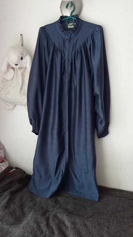 Сукня в стані нової, легенька, неймовірно приємна на дотик. Склад тканини цікавий, штучний шовк. Дійсно нагадує шовк і віскозу. Чудовий дизайн, дуже гарнюні ґудзики. Розмір - 42, приблизно XL. Важко виміряти, бо ж цікаво пошите і рукав реглан. Під пахвами - 66, рукав від горловини - 78, на гумці, широкий, повинен гарно лягати. Висота пройми - 31. талія - 65, Рівне, стегна 68, довжина - 122. Сукня дуже гарна і виглядає як важкий шовк. Тканина - tensel, ось що знайшла на просторах інету - Тенсель (Tencel) - это тип ткани, изготавливаемой из натурального сырья - древесины эвкалипта или других хвойных пород, путем переработки целлюлозы в волокна. Он является искусственным материалом, но обладает свойствами, схожими с натуральными, такими как мягкость, прочность, воздухопроницаемость и гигроскопичность. Подробнее о тенселе: Производство: Тенсель изготавливается путем растворения целлюлозы в специальном растворителе, затем волокна извлекаются и формируются в нити, которые затем переплетаются в ткань. Свойства: Он отличается высокой прочностью, мягкостью, приятным на ощупь, хорошей воздухопроницаемостью и гигроскопичностью. Преимущества: Тенсель подходит для людей с чувствительной кожей, обладает антибактериальными свойствами.