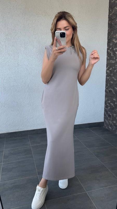 арт. ha. 490 Тканина: кулір (95% котон, виробництво Туреччина) Колір: чорний, шоколадний, сірий, блакитний, рожевий Розмір: 42-44, 46-48, 50-52 Плаття прямого крою, з карманами. Тканина не жарка, не парить, добре тягнеться, не вистірується, не скочується.