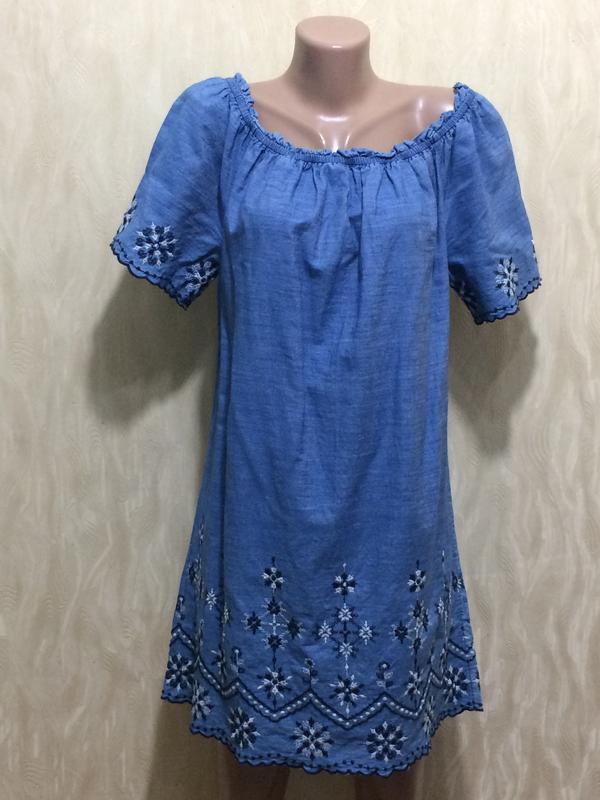 Джинсова сукня вишиванка TU в ідеальному стані. Тканина склад 100% котон. Розмір написаний 16, дивіться виміри ПОГ 53см ПОТ 56см ПОБ 57см довжина по спинці від лінії плеча 85см Надсилаю Новою поштою, укрпоштою. 1817