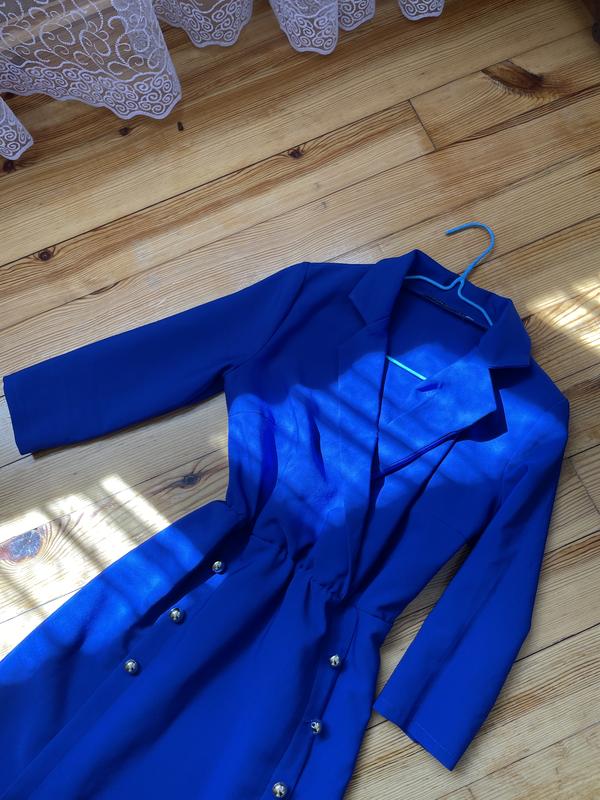 Сукня насиченого синього кольору довжини міді, вдягала декілька раз, стан гарний. В комплекті йде пояс