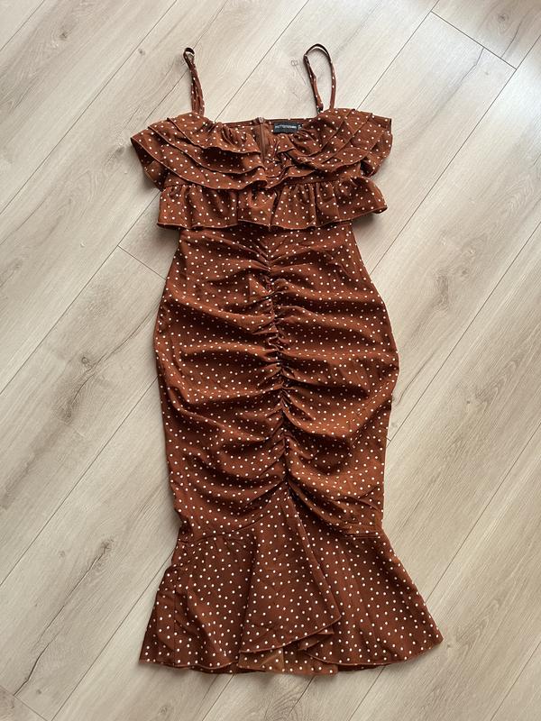 Стан сукні ідеальний. Розмір 34. Сідає ідеально по фігурі, гарно підкреслює талію і стегна. Тканина легка
