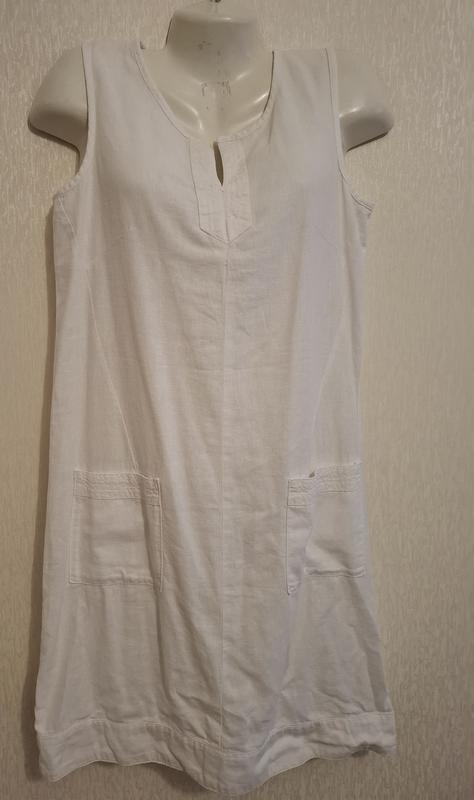 Сукня жіноча біла NEXT,,без рукавів,з карманами,,внизу планка,не жарка. Розмір: 8(42/44) Плечи- Пог- Пот- Низ- Довжина- 55%льон 45%віскоза
