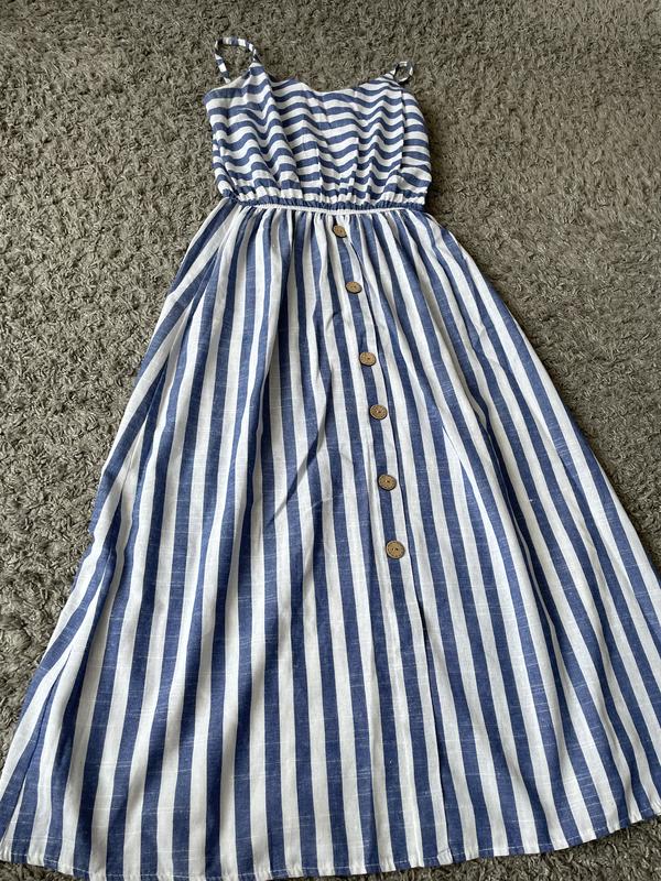 Літня сукня в полоску В гарному стані,без дефектів Підійде на розмір с/м 100% котон Всі додаткові фото та заміри скину по запиту Пишіть в повідомлення Укрпошта +10 грн до ціни за їхнє пакування