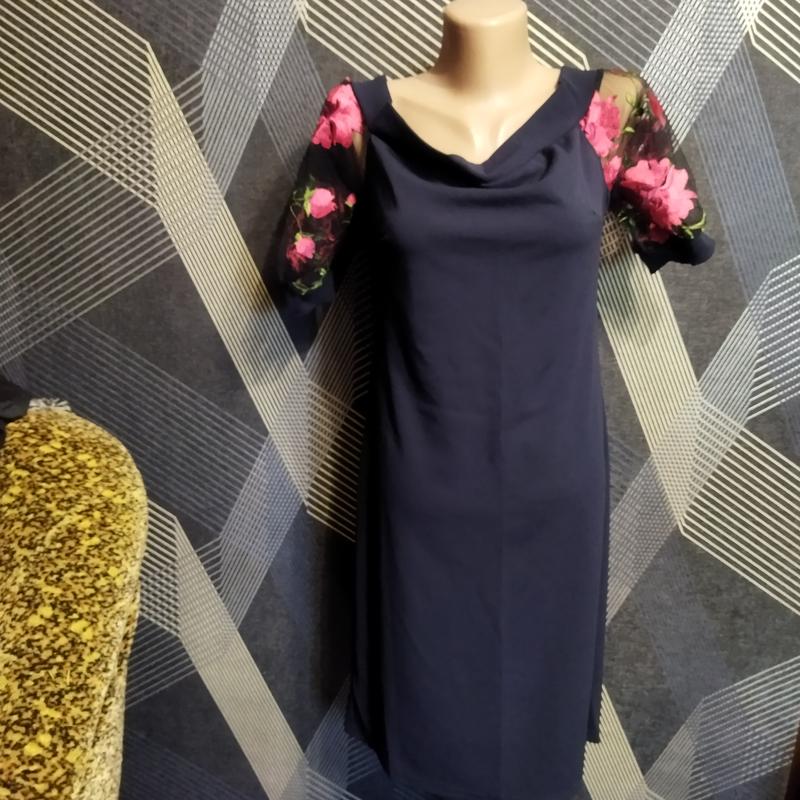 Нова, купувала собі, але так і не було нагоди одягнути. Фасон приталений, по фігурі, носиться на приспущені плечі. Довжина від плеча 90, пог 48, пот 41, поб 50. Тканина тягнеться, середньої щільності.
