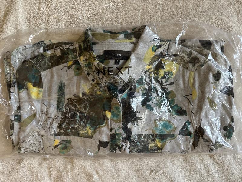 Сукня сорочка нова next. В упаковці. Паперова бірка зірвана. Але абсолютно нова, не ношена річ. Мені трохи замала в стегнах, хотілося трохи вільніше щоб сиділа (обхват 98 см). Розмір 8, підійде на XS-S. Тканина повністю натуральна - віскоза. На ґудзиках. Крій рівний. Можна під пасок або без нього. Заміри на фото.