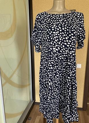 Чудове літне плаття в стилі Бохо, короткі рукави, три яруси юбки, легке не парить, 100% віскоза Плечі 9 ПОГ 56 Від горловини по переду до першої лінії відрізу 24 Загальна довжина від горловини по спині 90 Довжина рукава 20