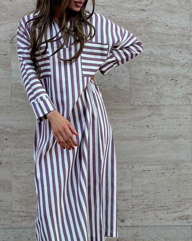Классное и удобное платье рубашка из льна в полоску, платье миди, платье