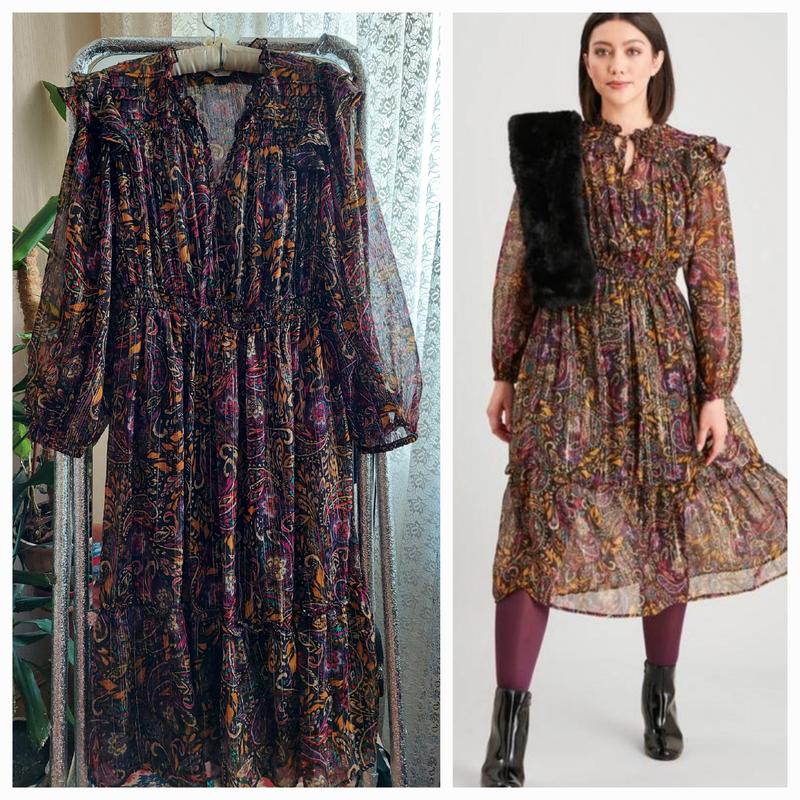 Шифоновое черное платье миди с люрексовой нитью в принт пейсли tu (размер 14-16)