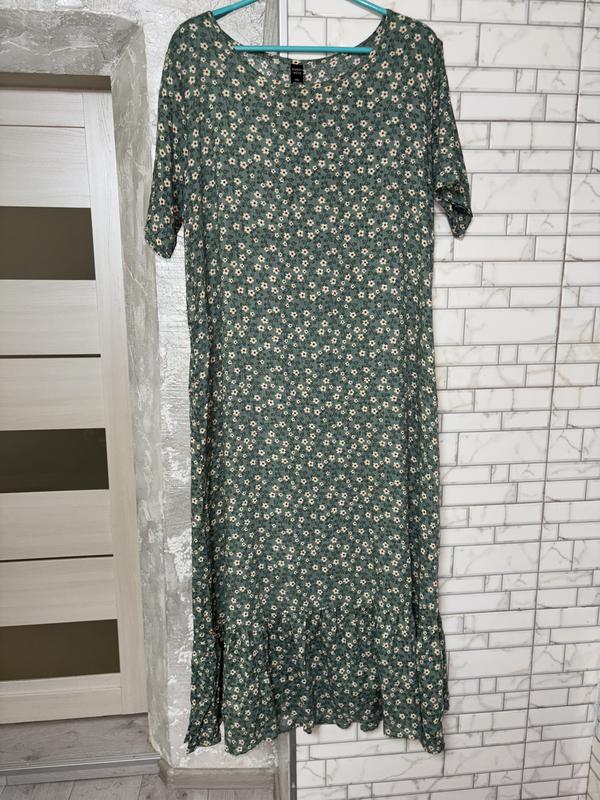 Гарна сукня міді з воланом в квітковий принт Пог 59 Поб 65 Плечі 42, рукав 24, біцепс 22,5 Довжина 128