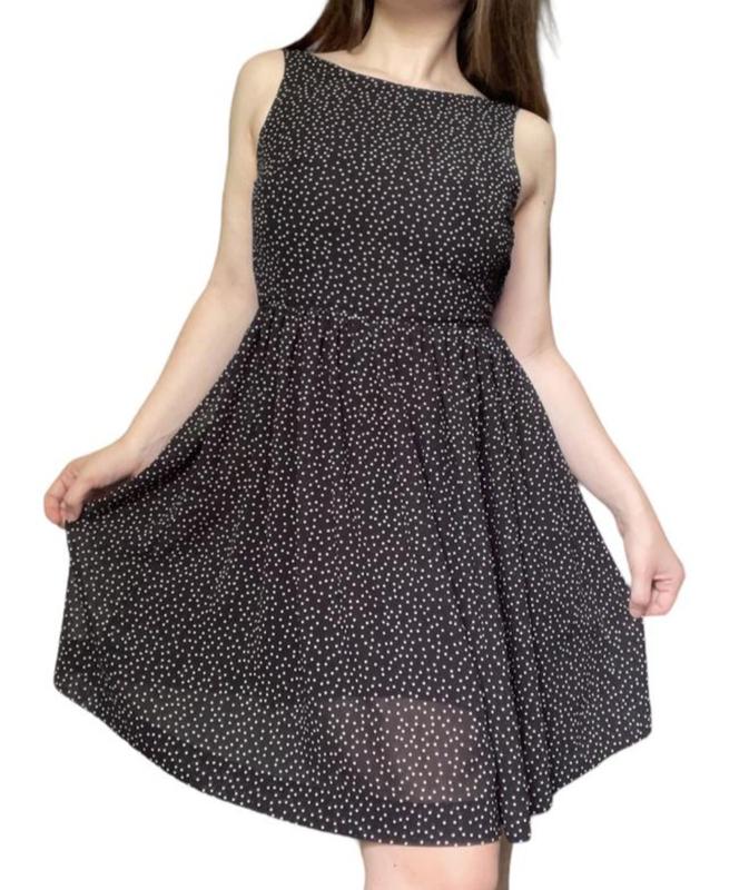 В отличном состоянии , фирменное , летнее платье в горошек , с молнией на спине и бантиком , с подкладкой . ПОГ 42 см , ПОТ 35 см , ПОБ вольно , Длина 85 см .
