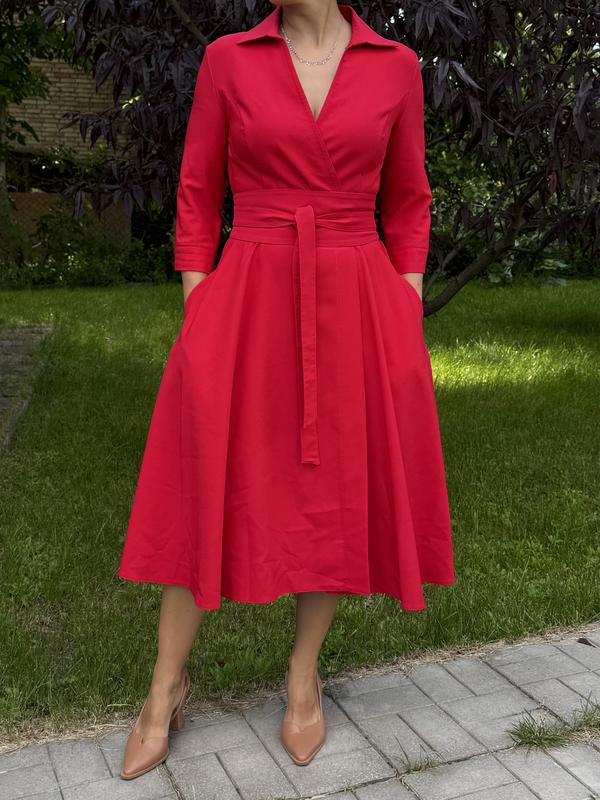 Сукня класична, формату костюм Пояс в комплекті Є кармани Реальний колір на фото з біркою На фото знизу трошки м'ята Матеріал щільний, типу костюмки !За параметрами сукні звертайтесь в особисті повідомлення! Параметри моделі на фото: груди 90, талія 70, стегна 100, зріст 160 !Є ТОРГ!