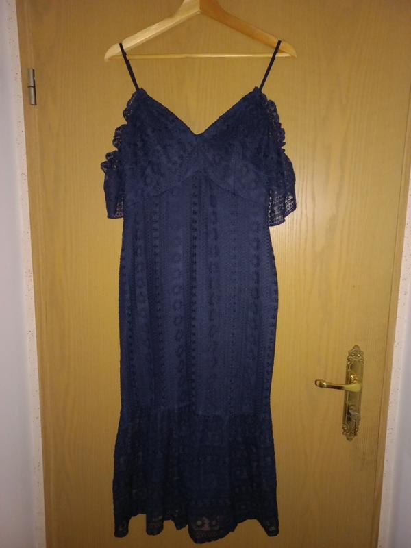 Платье миди на регулируемых брителях с бюстиком, который имеет вкладыши. Также красивые воламы на плечах. Ткань прозрачная, имеет подкладку, садится по фигуре. Размер М