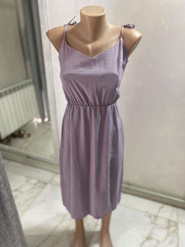 Сукня лілового кольору , талія на резиночці , бретельки регулюються , невеликий виріз на ніжці Розміри : хс-с , с-м