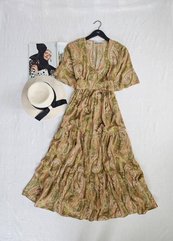 🌿сукня в принт від Zara, талія ззаду на резинці Розмір:S Заміри:ПОГ 43 см, ПОТ 33 см, довжина 132 см