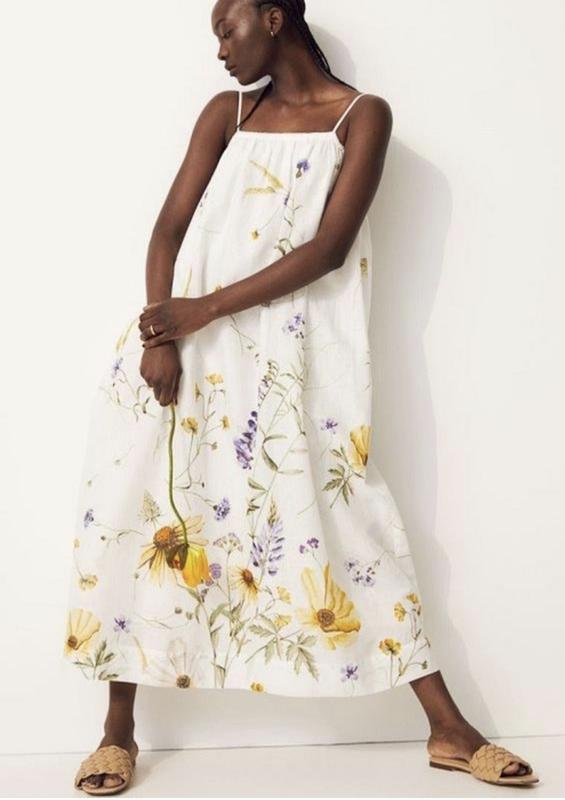 🌿лляний сарафан в квіти H&M вільного крою, брителі регулюються, тканина 55% котон, 45% льон Розмір:XL Заміри:ПОГ 53 см, довжина 130 см