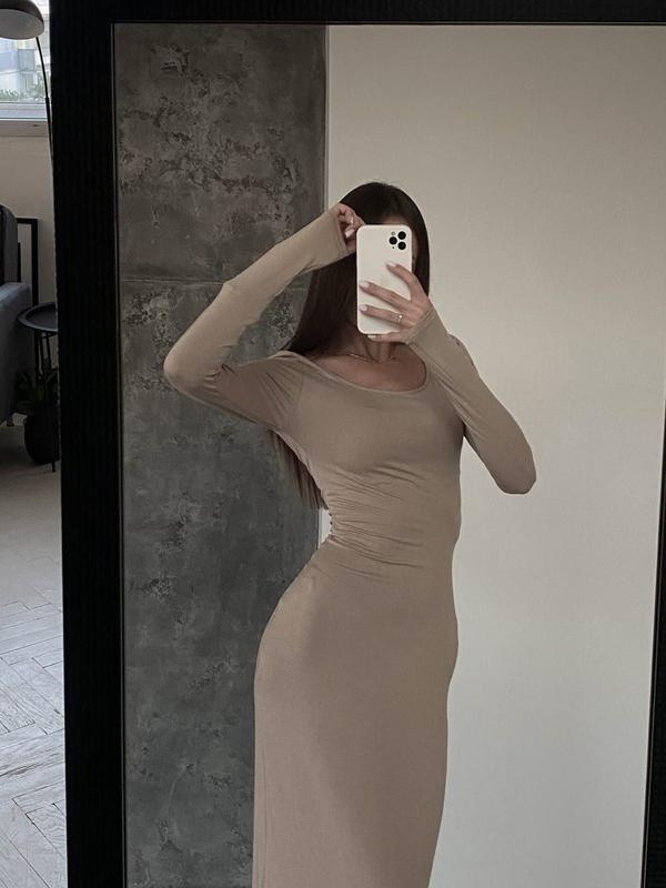 Бежеве міді плаття жіноче облягаюче по фігурі коричневе як скімс мокко