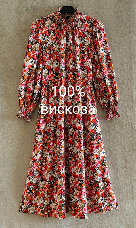 Лёгкое, красивое платье в цветочный принт с длинным, объемным, интересным рукавом, талия на резинке. Состояние супер идеальное. Пог. 47 см Пот. 36-47 см Рукав 62 см Длина по спинке 123 см Длина юбки 83 см 1/2 ширина низа платья 93 см.