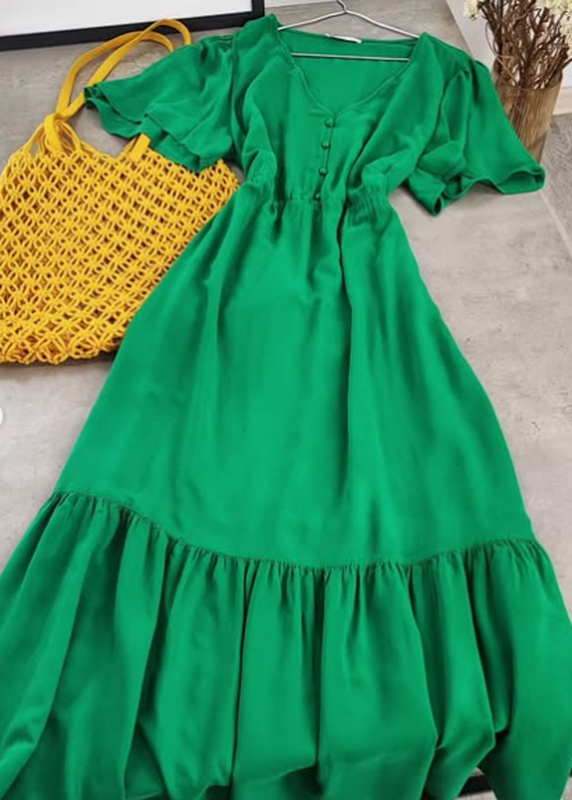 100% віскоза, приємна, м'яка тканина, не тягнеться Розмір EUR46 (L) Довжина 126 см Півобхват грудей 59 см Півобхват талії 46 см, на резинці Півобхват бедер близько 65 см Стан нової речі