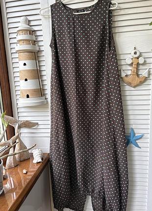 Платье свободного кроя Баллон Очень стильно смотрится Ассиметричный крой Сочетание бирюзового и темного шоколада Тренд этого лета горох Легкая немнущаяся ткань