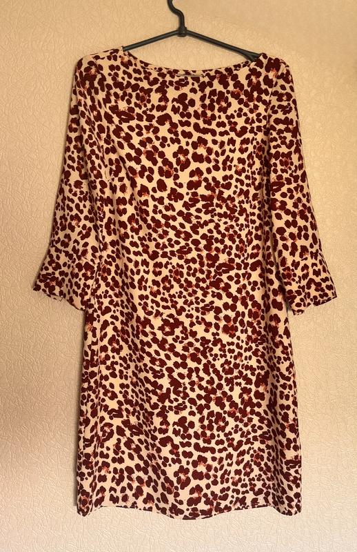 Сукня міді в леопардовий принт, з паском, на підкладці, розмір 34 (xs), стан ідеальний