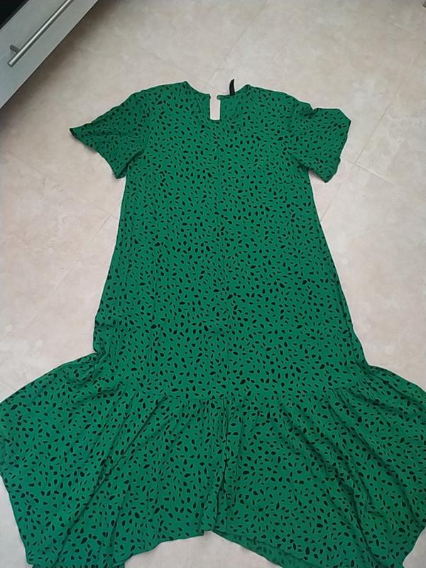 в идеальном состоянии, как новая. насыщенный зеленый цвет с черным вкраплениями. длина 111-120( min, max) ширина под рукавами 52 по плечах 42, плече 12 на уровне талия 53 на уровне бедер 62.