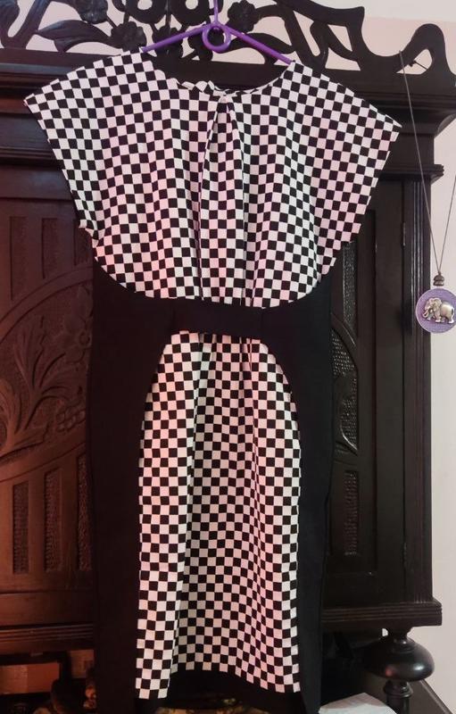 Стильное женское платье в шахматный принт Длина изделия - 96 см Молния по спине – 18см Горловина на защипах По линии талии вшита резинка для формирования силуэта От проймы до проймы впереди – 42 см Ткань тянется, по талии вшит пояс.
