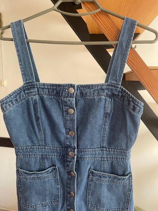 Сарафан або сукня, з цупкого деніму. Класно виглядає як на футболку так і на топ або ліф. Сидить фото фігурі.