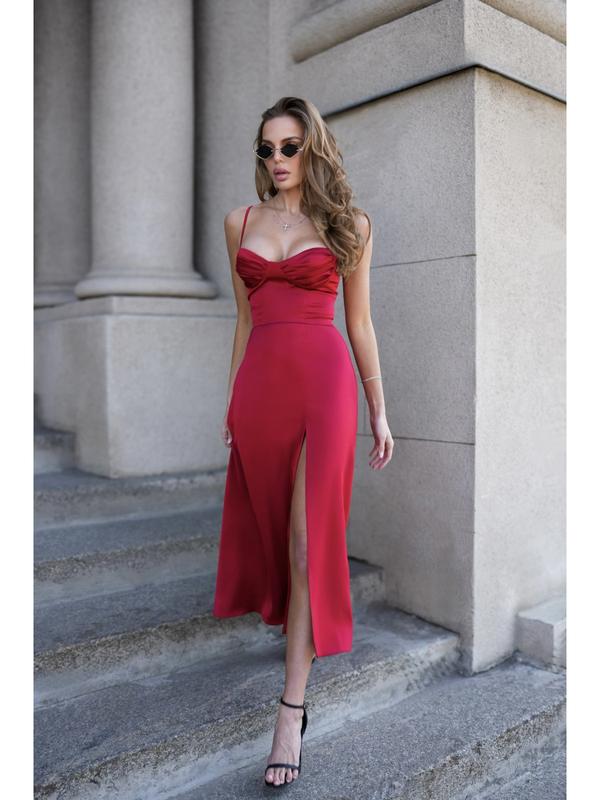 Волшебное шелковое платье миди (8 цветов) длинное платье с разрезами