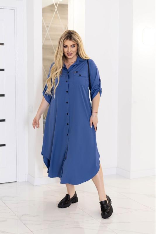 💞Модель 033💞 Сукня-сорочка, має довжину міді з асиметричним низом, застібається на чорні гудзики ,по всій довжині, спереду має дві нагрудні кишені. Рукави до ліктя, є хлястики. Тканина: софт . 💰Ціна: 940 грн Розмірний ряд: 🔢48-50, 🔢.52-54, 🔢56-58, 🔢60-62. ❤️48-50 Об'єм грудей 117см Об'єм талії 119см Об'єм стегон 140см Довжина виробу 132см Ширина плечей 42см Об'єм біцепса 42см Довжина рукава 43см ❤️52-54 Об'єм грудей 125см Об'єм талії 127см Об'єм стегон 148см Довжина виробу 134см Ширина плечей 44см Об'єм біцепса 45см Довжина рукава 44см ❤️56-58 Об'єм грудей 133см Об'єм талії 135см Об'єм стегон 156см Довжина виробу 136см Ширина плечей 46см Об'єм біцепса 48см Довжина рукава 45см ❤️60-62 Об'єм грудей 141см Об'єм талії 143см Об'єм стегон 164см Довжина виробу 138см Ширина плечей 48см Об'єм біцепса 51см Довжина рукава 47см ✅✅✅✅✅✅✅N.K
