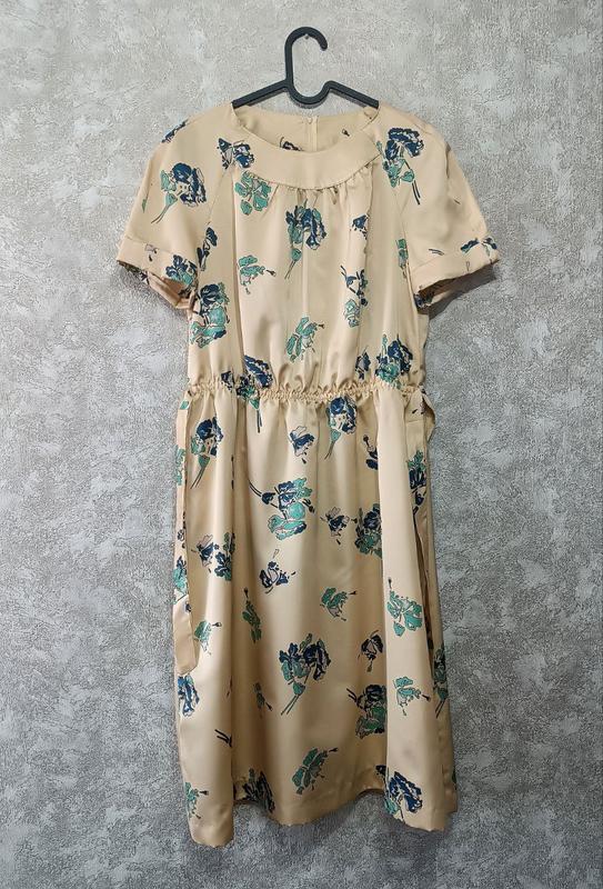 Сукня літня з пояском Розмір L XL Стан відмінний Склад атлас Довжина 107 см Напівобхват талії 40 см в розтянутому виді 57 см Довжина рукава 29 см Дуже легенька і приємна до тіла Легко прасується Застібається ззаду на змійці Кишень немає Handmade