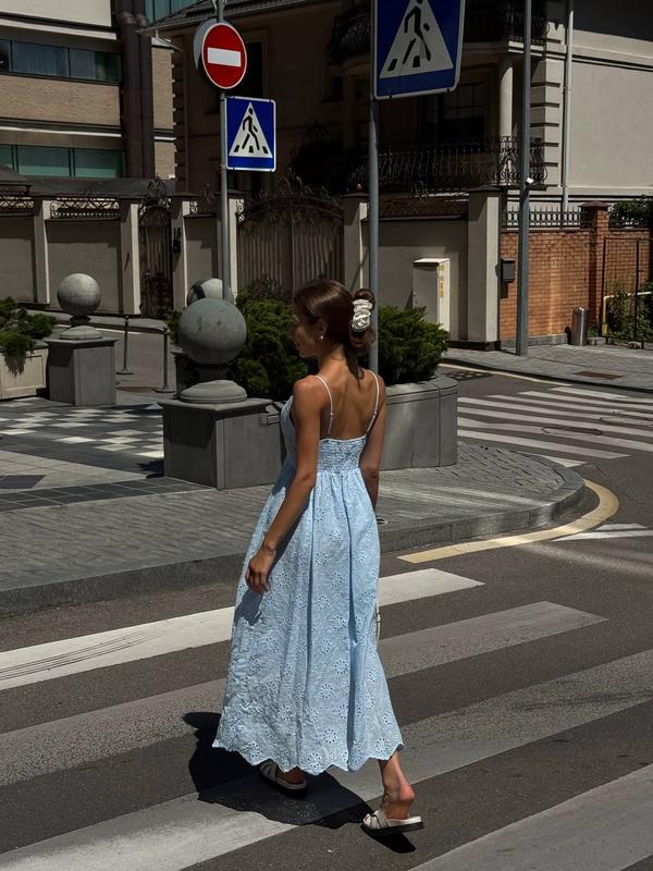 ✅Арт 1042 (білий) 🤍 Літня сукня, яка закохує з першого погляду! Легка сукня на тонких бретелях виконана з повітряної бавовняної тканини з ажурною вишивкою, вона створена для теплих днів і натхненних моментів. V-подібний виріз, акцент на талії та розкльошений фасон ідеально підкреслюють жіночність і витонченість. Має підкладку, тому не просвічується 📏 Розмір універсальний 🤍 довжина від грудей 110 см, груди 80-92 см, талія 58-80 см (пружна резинка на спинці) 🌿 Ідеальна для прогулянок, відпочинку біля моря або літніх фотосесій. 💙 Доступні кольори: білий та блакитний