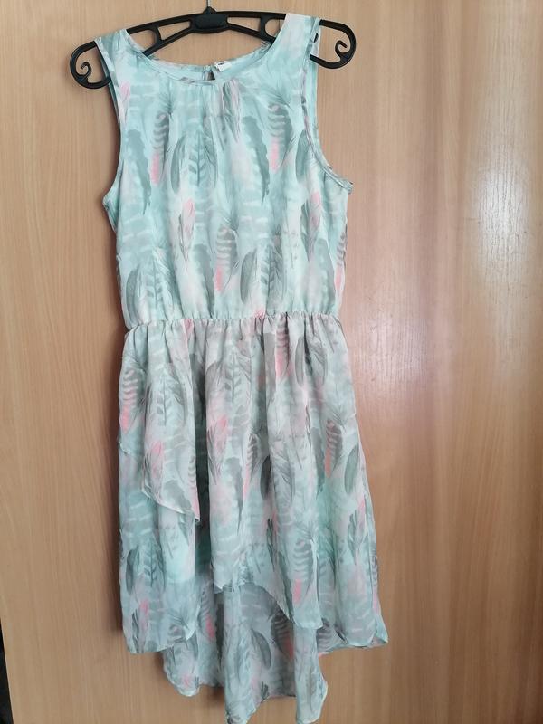 Платье с шифоном H&M. На подкладке. ПОП 30 см, ПОГ 42 см, ПОТ 36 см, ПОБ 52, довжина спереду 75см, сзаду 100 см. Матерiал полiестер. Из недолекив - на ткани затяжки.