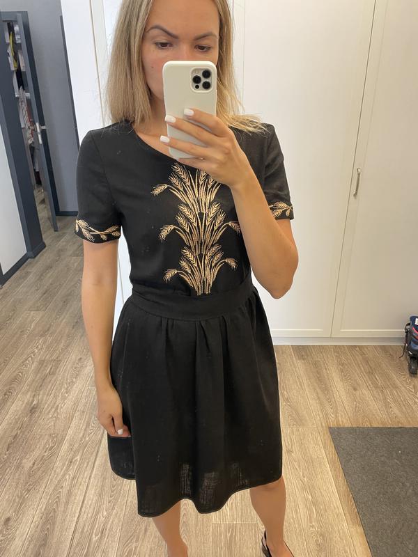 Склад тканини: 50% льон, 50% віскоза. Вишивка машинкою. Власне виробництво.