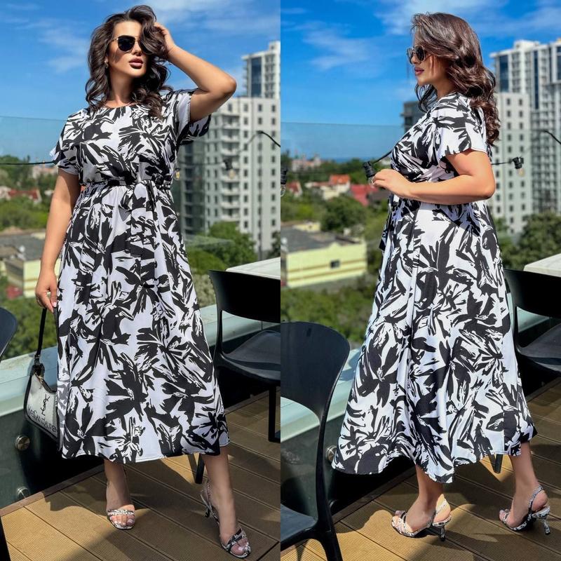 Розмір:50-52,54-56,58-60 ✨Тканина:супер софт ✨Сукня з кишенями,на талії резинка Заміри: Розмір 50-52 ог-116,от-80/114,ос-150,довжина-129,рукав-25 Розмір 54-56 ог-126,от-86/120,ос-160,довжина-135,рукав-27 Розмір 58-60 ог-136,от-90/126,ос-170,довжина-140,рукав-30 дгс