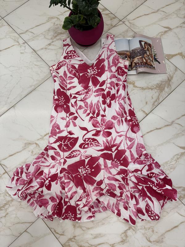 Жіноча літня сукня з квітковим принтом у розмірі 2-3XL. Стан - ідеальний(є недоліки, трохи жовта під пахвами, в носці непомітно). Склад: 100% котон/підкладка - 65% поліестер, 35% котон.