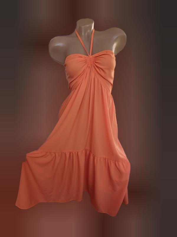 Без дефектів. Країна виробник ШріЛанка Тканина 98% поліестер, 2% еластан Розмір 46 Довжина від грудей до низу (без зав'язок) 86 см Полуобхват грудей 33 см до 51 см Полуобхват талії 31 см до 48 см Полуобхват стегон 58 см до 70 см