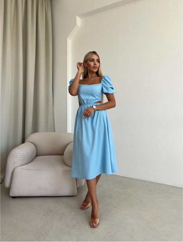 Жіноча міді сукня у блакитному кольорі відкрита і ідеальна для літа. Матеріал: софт. Розмір 42/44
