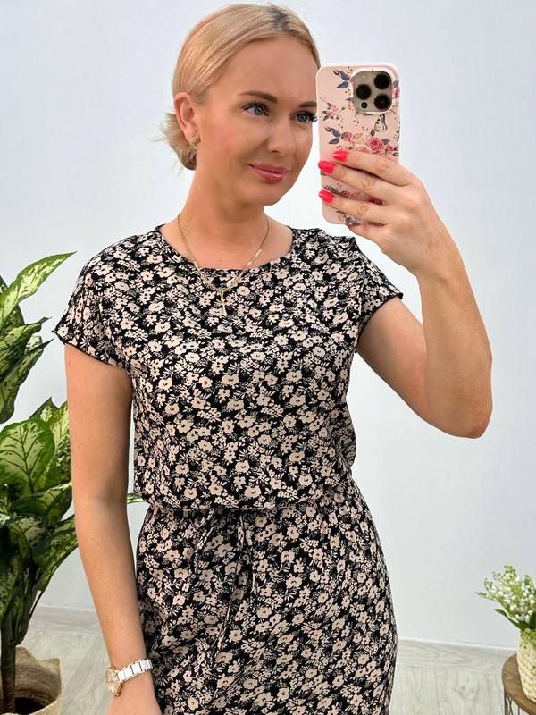 Сукня Нові кольори 💥 Модель 290 Розміри: 42-46, 48-52 Тканина: штапель Колір: чорний , білий , олива , блакитний , капучино Талія на резинці Поясок в комплекті