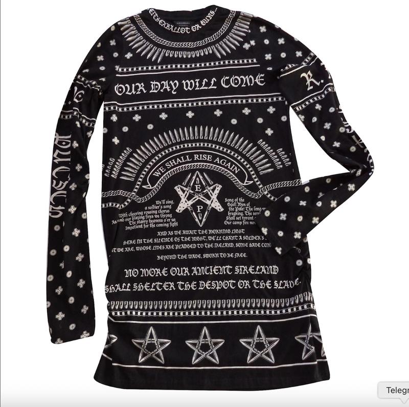 Особлива сукня з принтом кельтських войовничих пісень. 98% cotton, 2% spandex.